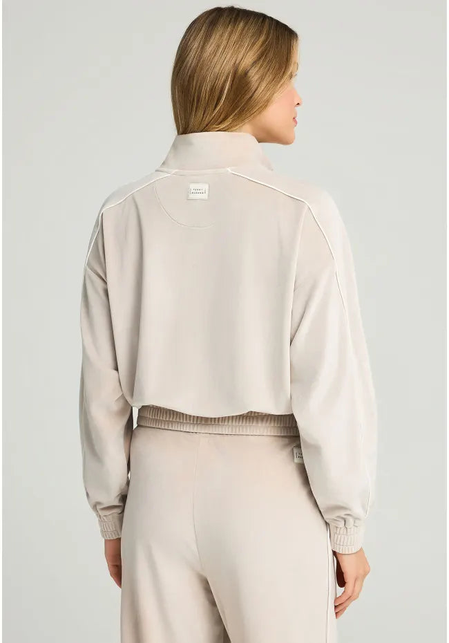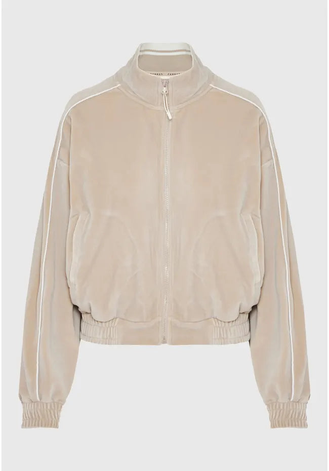 Βελουτέ ζακέτα με ρίγα μπεζ